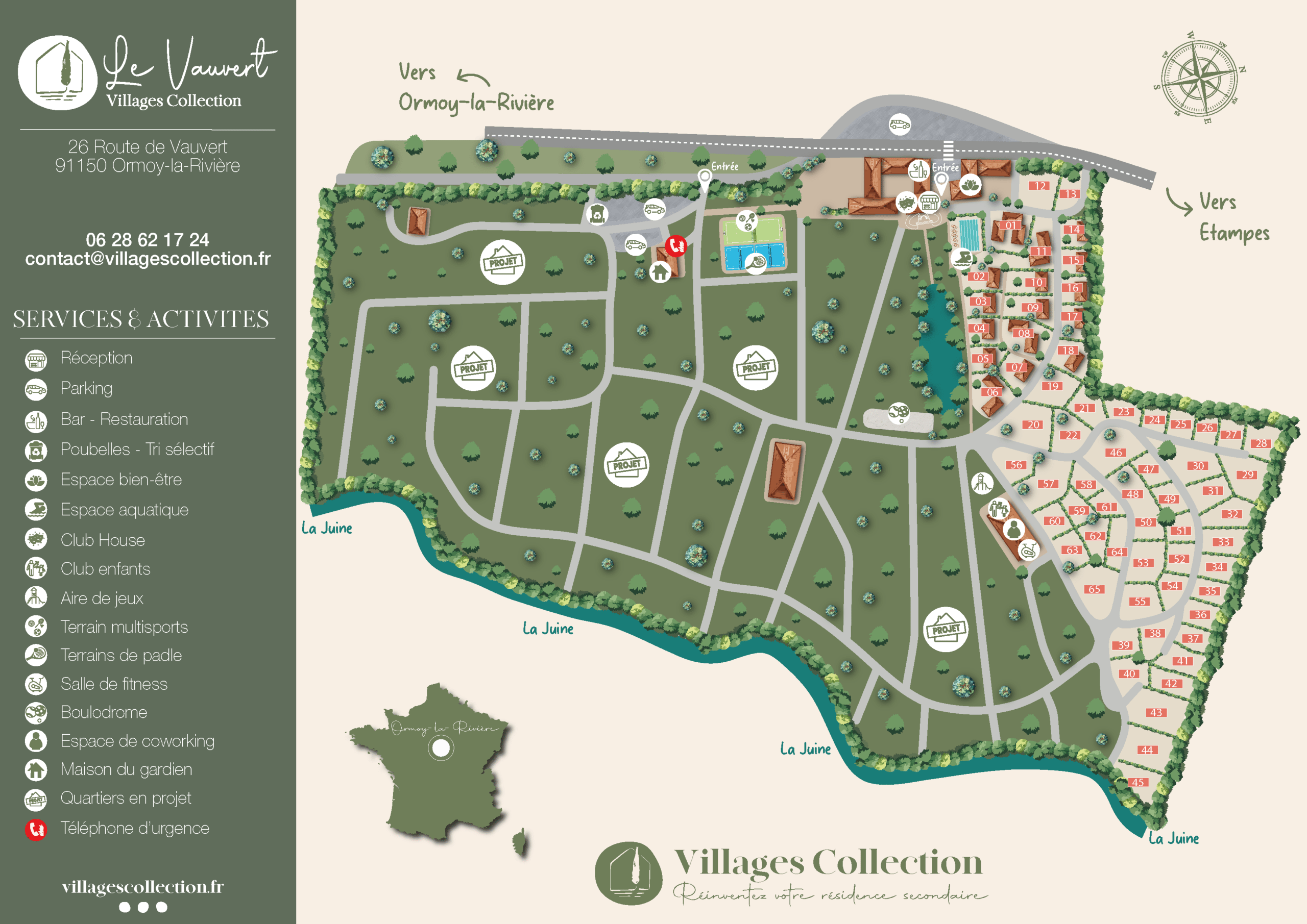 Découvrez Villages Collection Le Vauvert, un camping résidentiel haut de gamme en plein cœur de l’Essonne, à Etampes, à seulement 30 minutes de Paris.